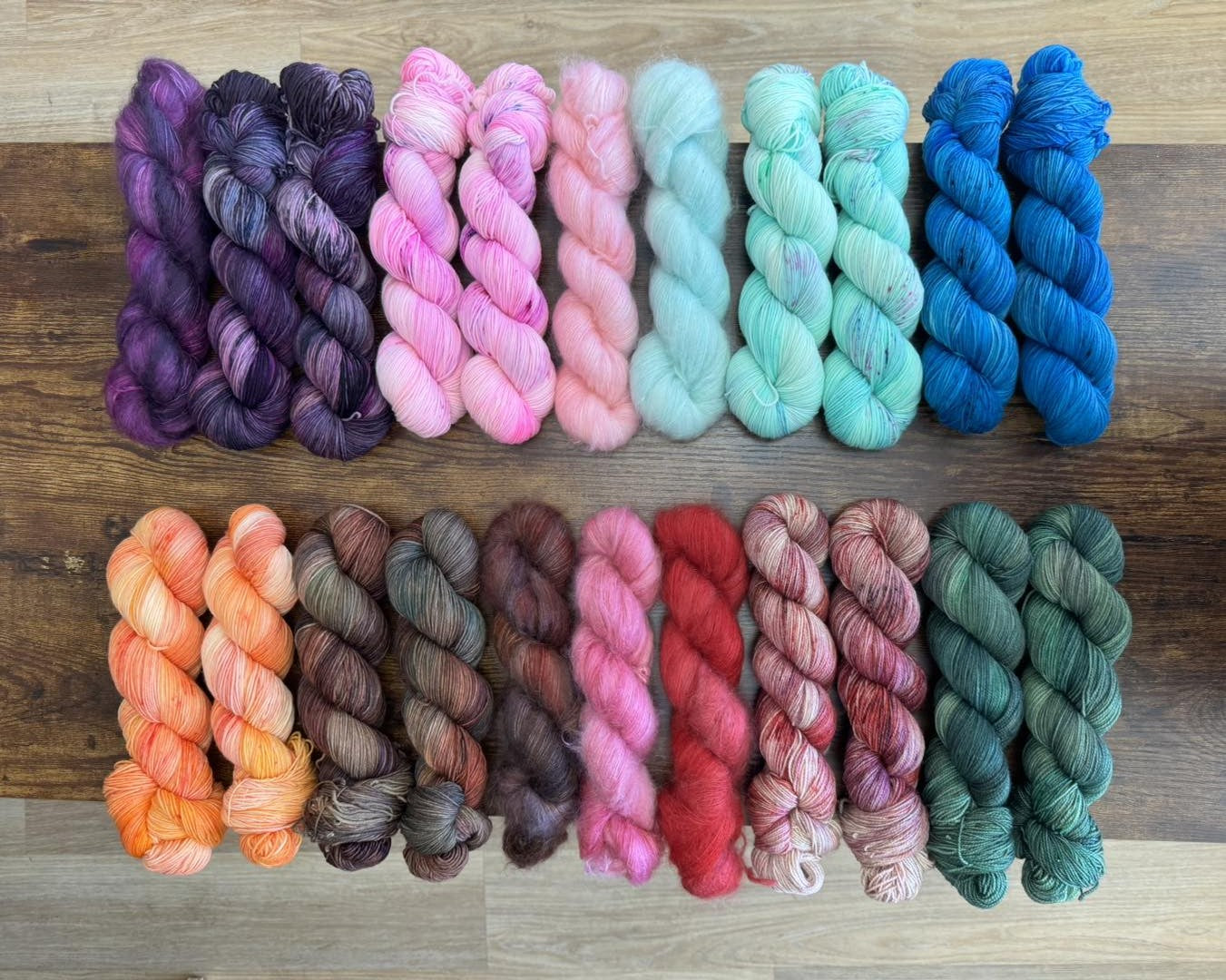 Thick wool yarn, fluffy alpaca, hand dyed colors, and more.