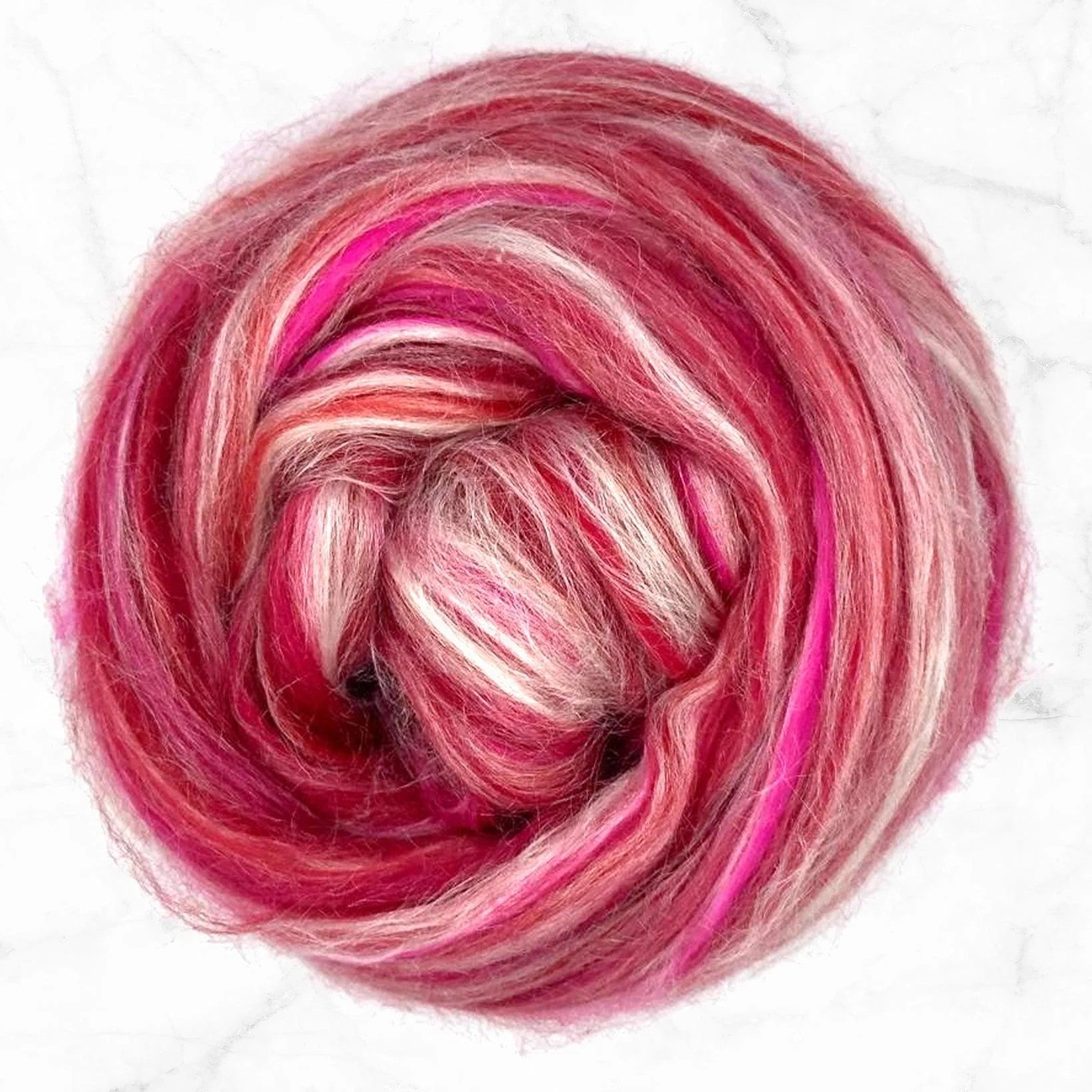 Like a silk rose! A stunning blend of dyed merino and bleached tussah silk.